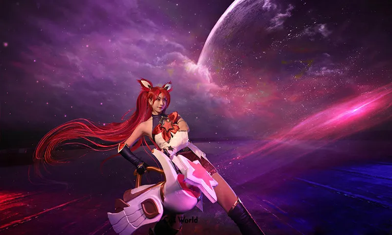 The star guardian jinx cosplay costume reimagines the champion as a magical girl defender, blending whimsical cosmic aesthetics with her destructive personality. This version features a glossy uniform with planetary defender themes while maintaining her massive cannon “Fishbones” as a core element. The costume combines pastel colors with Jinx’s rebellious attitude, creating a unique contrast that’s become extremely popular among cosplayers.